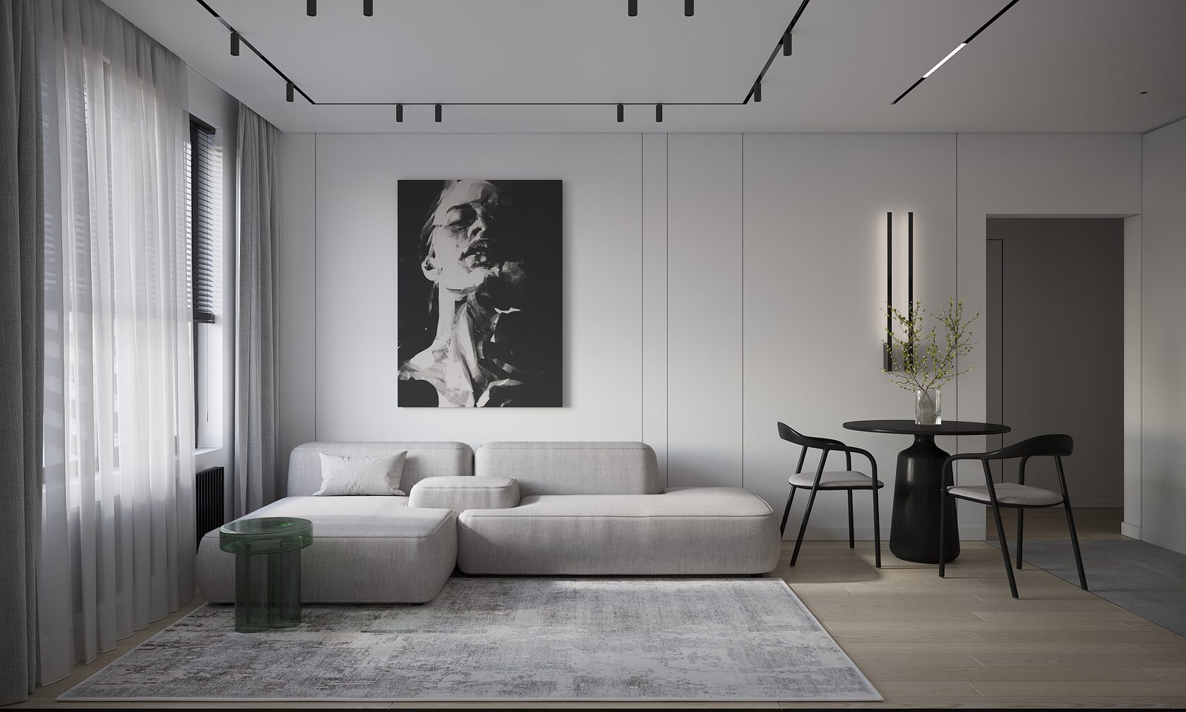 К нам обратилась молодая семейная пара с запросом на лаконичный дизайн в черно белых тонах. Мы разработали интерьер на основе сочетание контрастных фактур и оттенков.